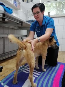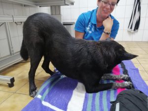 Während Chips sich vermutlich nur vertreten hat, ist Max im Rückenbereich sehr verspannt und Vuc zeigt eine Lahmheit im hinteren Bereich.