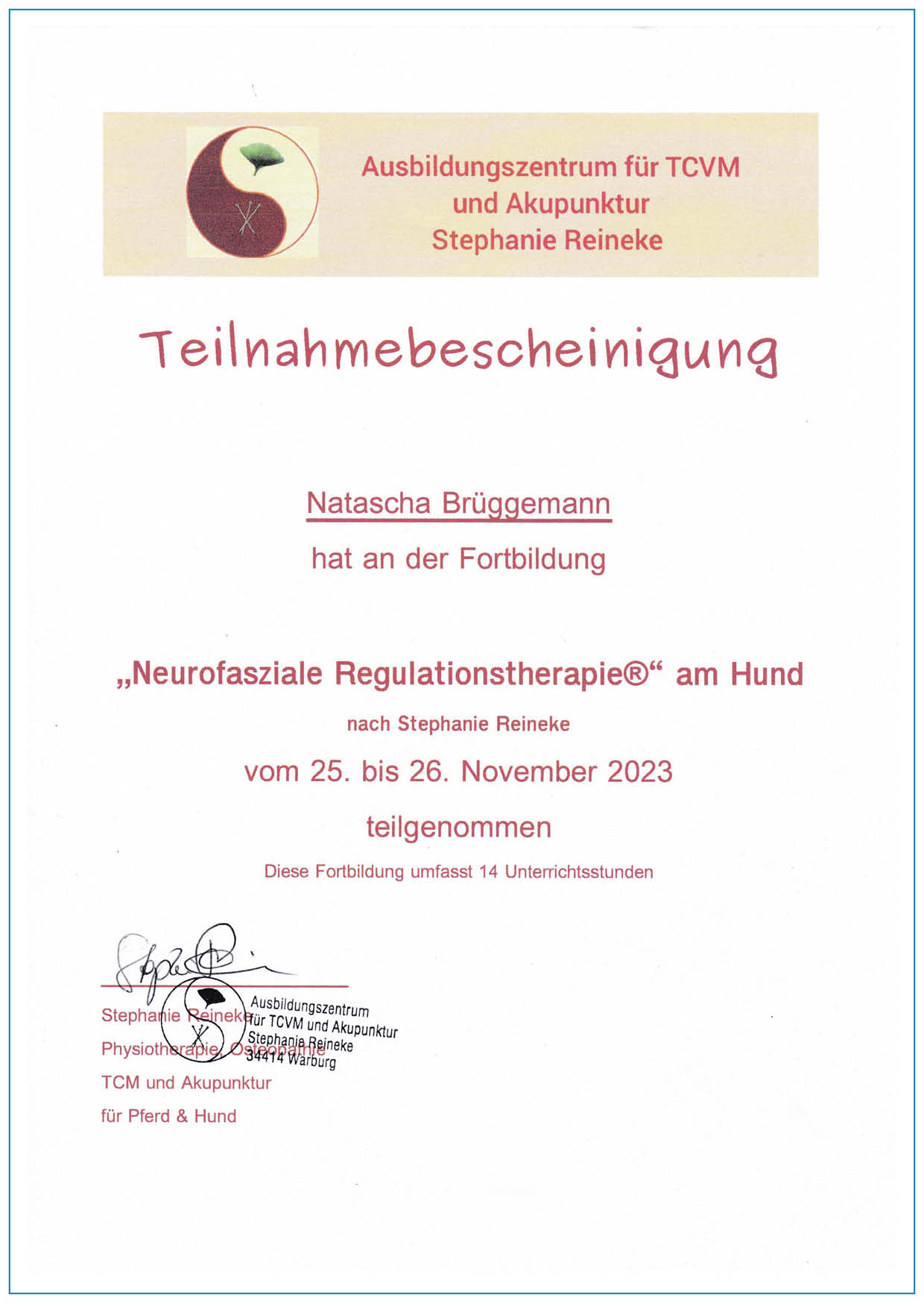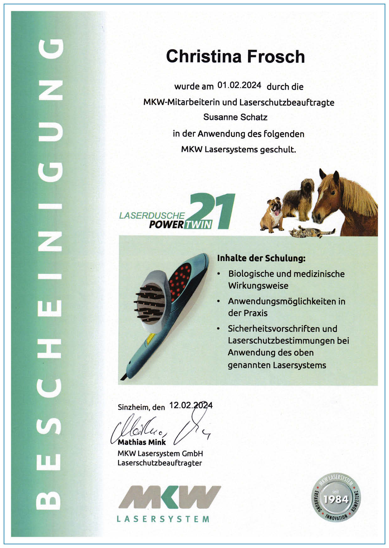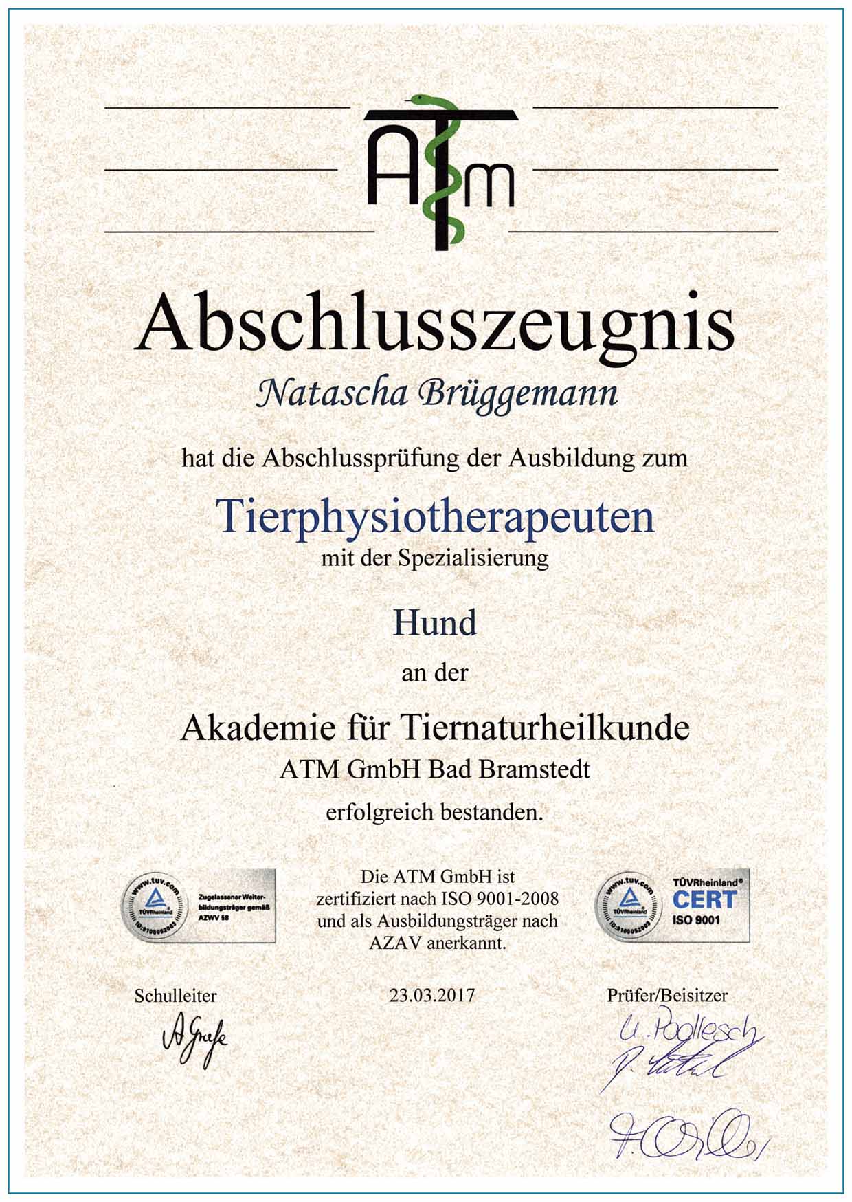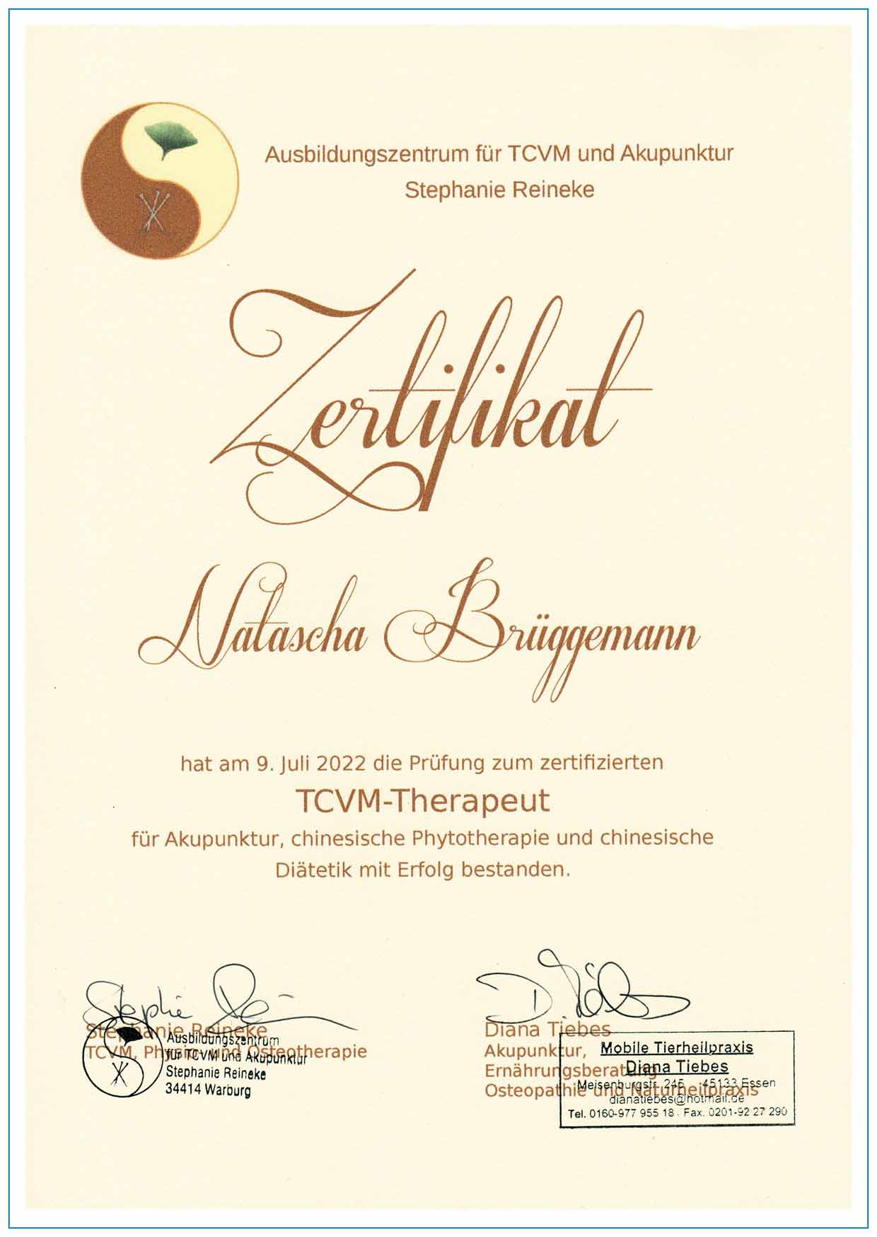 • Zertifizierter Abschluss als Tierphysiotherapeutin