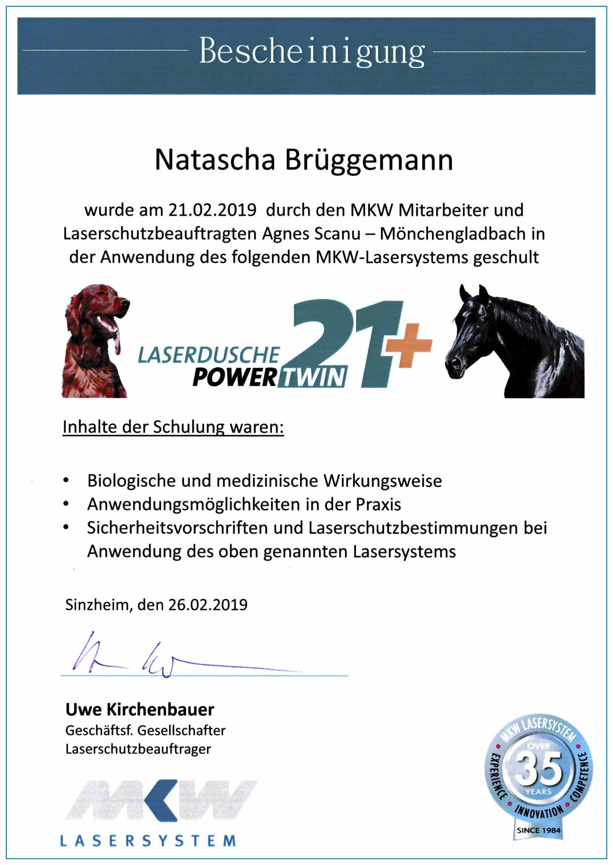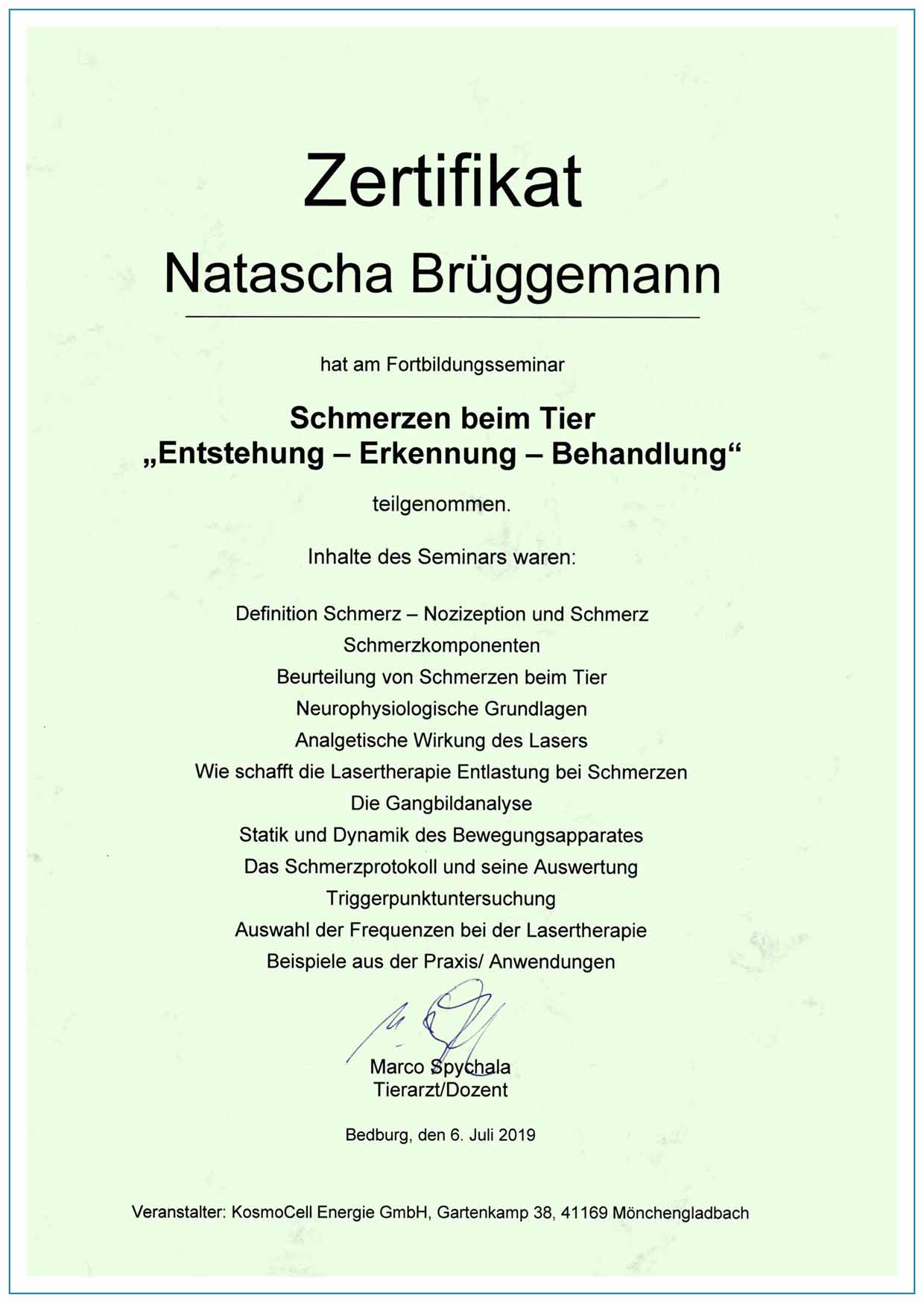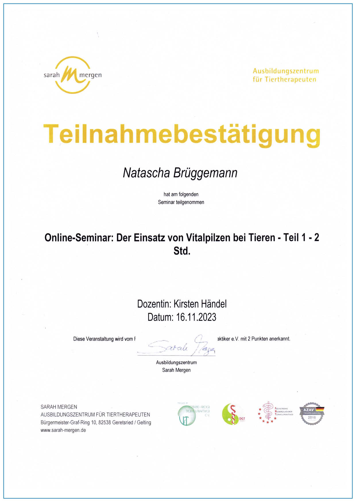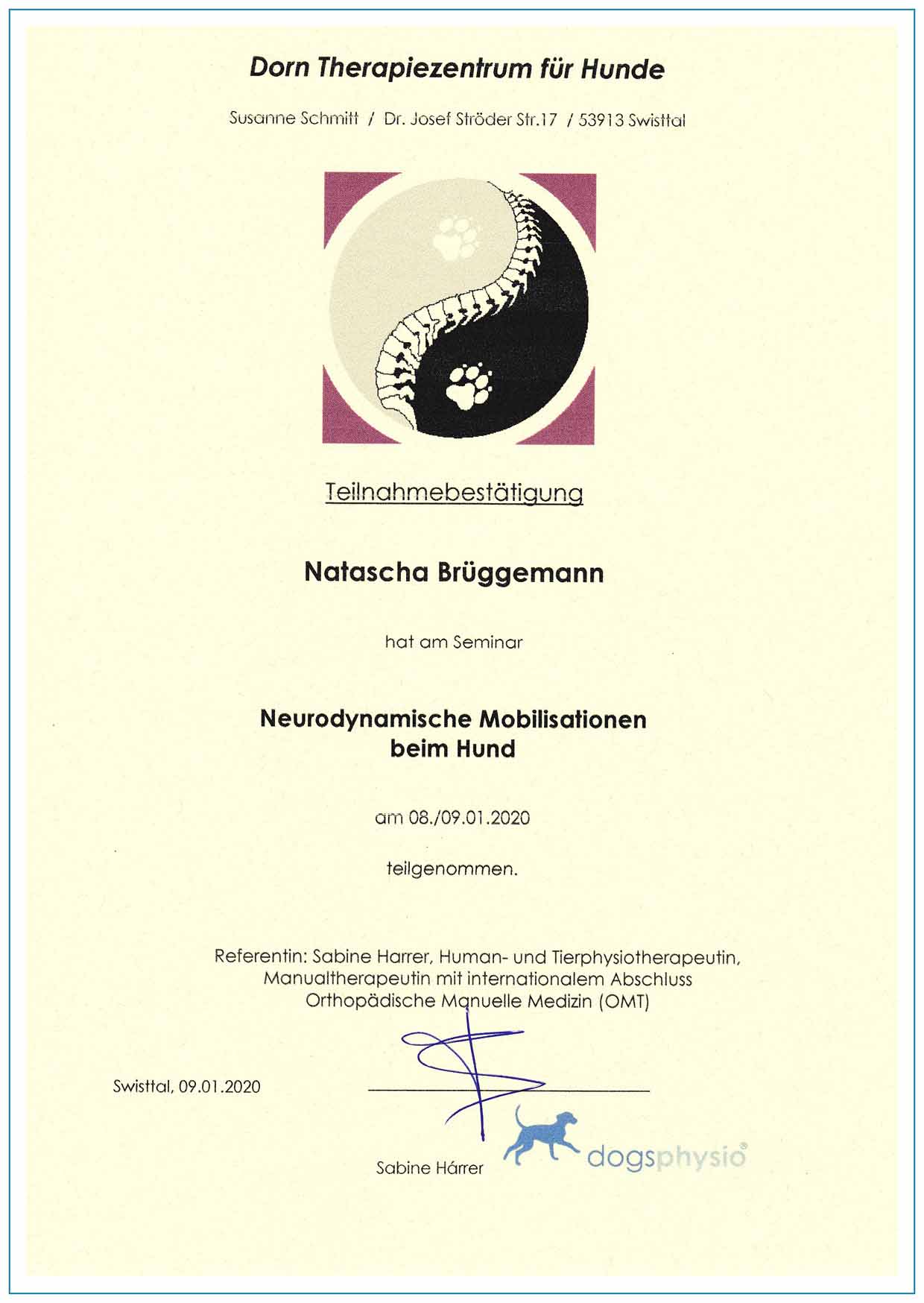 • Zertifizierter Abschluss als Tierphysiotherapeutin