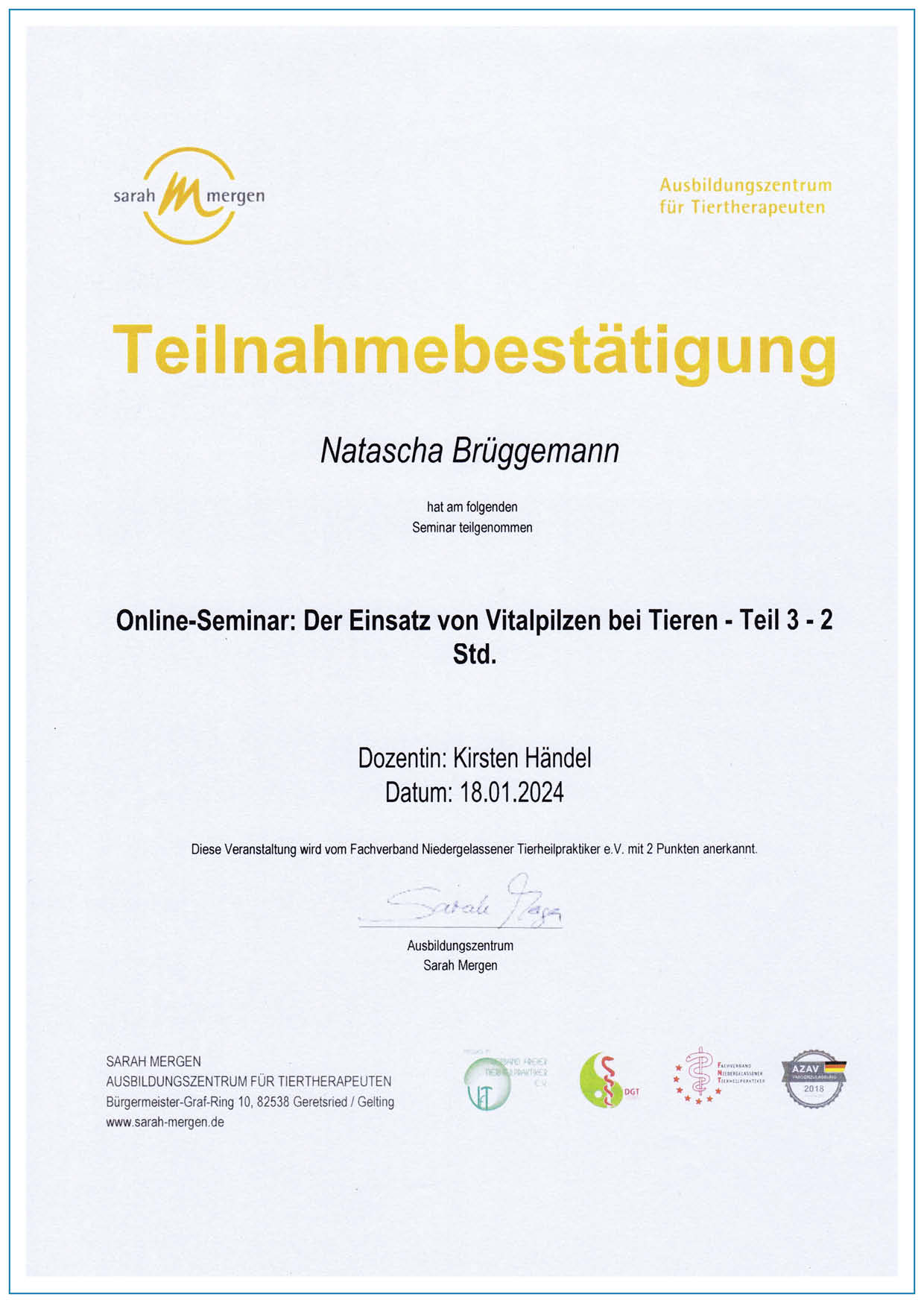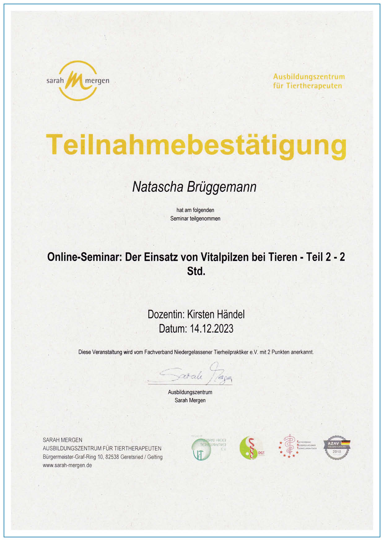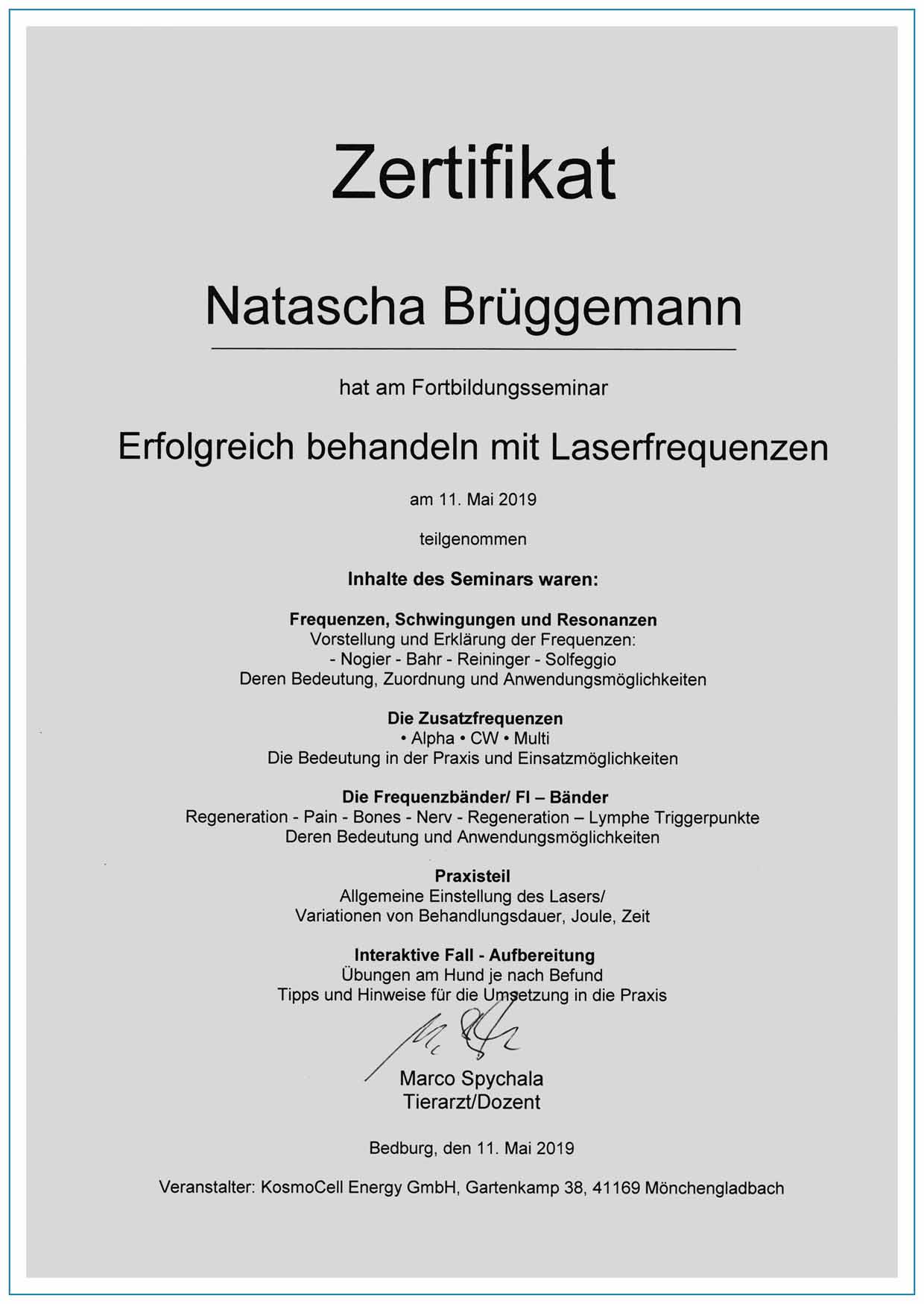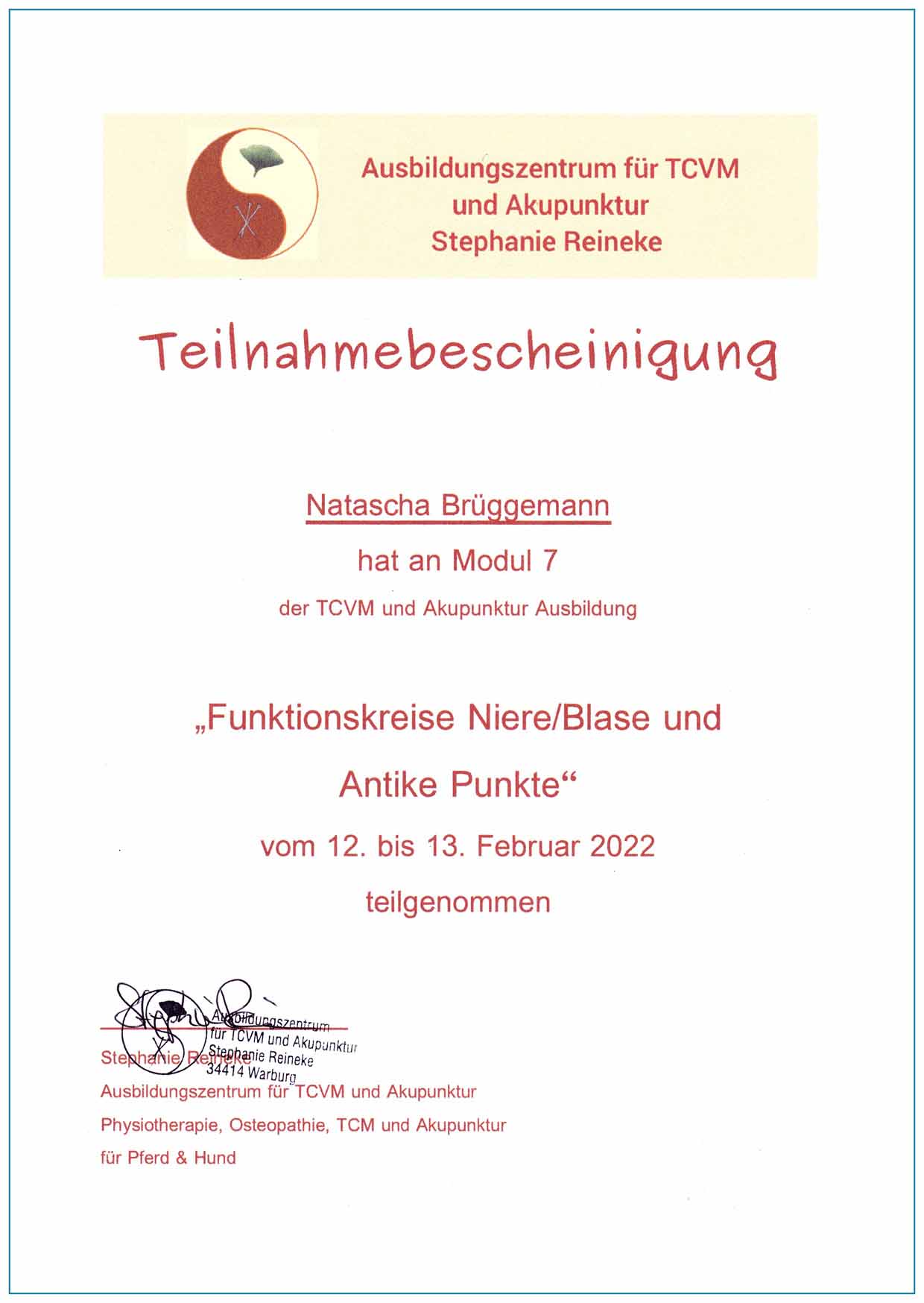 • Zertifizierter Abschluss als Tierphysiotherapeutin
